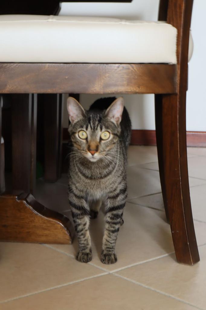 Sergio nos invita a sentarnos en la mesa del comedor, donde no hay nadie, pero se pueden notar algunas marcas que delatan el almuerzo de horas antes, cómo que los individuales aún están puestos, y hay pequeños residuos de arroz alrededor de la mesa, sospechamos que allí es donde se sienta el menor de la casa. Tomamos asiento con algunas sillas extra que Sergio fue a buscar para nosotras mientras Ana baja con su hermano menor, Vicente, en brazos. Nos saluda con la misma efusividad que su padre y se sienta con nosotras en la mesa, en la silla contigua a la que tomó su papá, a su lado, ella ayuda a Vicente a sentarse, quien no nos saluda por timidez.